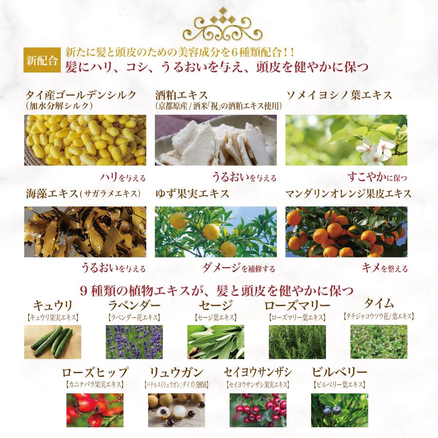 水、ラウロイルメチルアラニンNa、スルホコハク酸(C12-14)パレス-2Na、コカミドプロピルベタイン、コカミドDEA、ココイルグルタミン酸2Na、ラウリルグルコシド、二酸化炭素、BG、ココイルグルタミン酸TEA、温泉水、加水分解シルク、加水分解コラーゲン、グリチルリチン酸2K、α-グルカンオリゴサッカリド、ポリクオタニウム-51、マンダリンオレンジ果皮エキス、酒粕エキス、ソメイヨシノ葉エキス、サガラメエキス、ユズ果実エキス、カニナバラ果実エキス、ラベンダー花エキス、セイヨウサンザシ果実エキス、タチジャコウソウ花/葉エキス、ローズマリー葉エキス、セージ葉エキス、ビルベリー葉エキス、キュウリ果実エキス、オレンジ果皮油、グレープフルーツ果皮油、メントール、オレイン酸ポリグリセリル-10、ポリクオタニウム-10、ポリクオタニウム-50、PEG-2カプリリルアミン、ペンチレングリコール、プロパンジオール、エタノール、ペンテト酸5Na、カプリリルグリコール、フェネチルアルコール、フェノキシエタノール