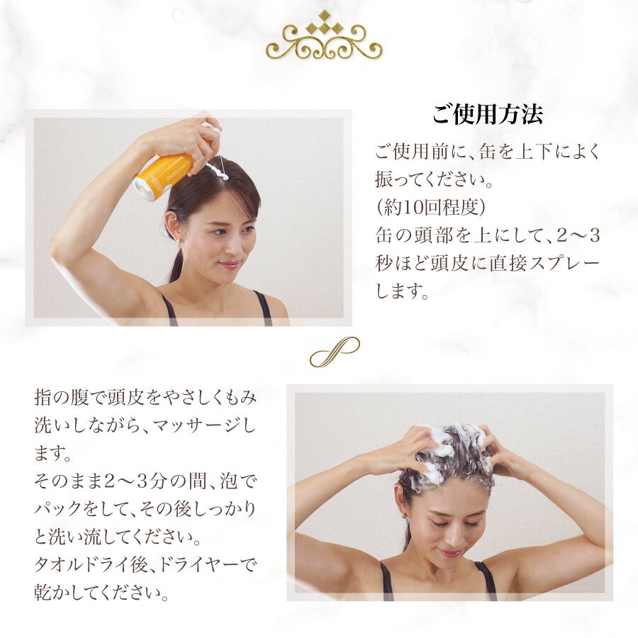 1.ご使用前に缶を上下によく振ってください(約10回程度)。缶の頭部を上にして、2〜3秒ほど頭皮に直接スプレーします。